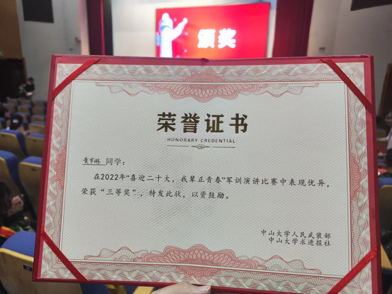 在军训演讲比赛中,必一·运动(B-Sports)-「登陆注册开户官网」黄罗琳同学表现突出,一路披荆斩棘,并最终获得三等奖的好成绩。