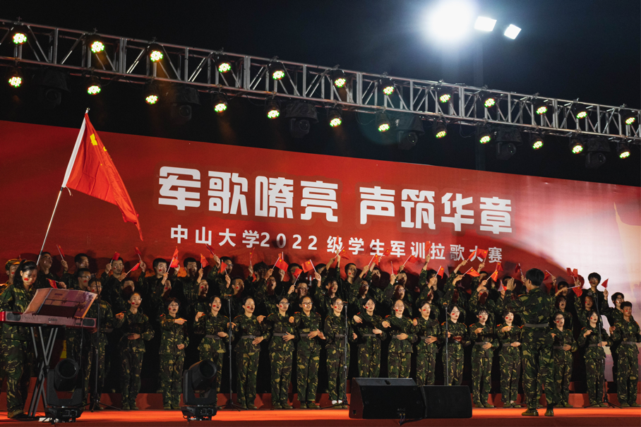 在军歌大赛中,学院合唱队用昂扬的精神演唱《国家》一歌,舞台上下激荡着同学们保卫祖国的坚定决心。