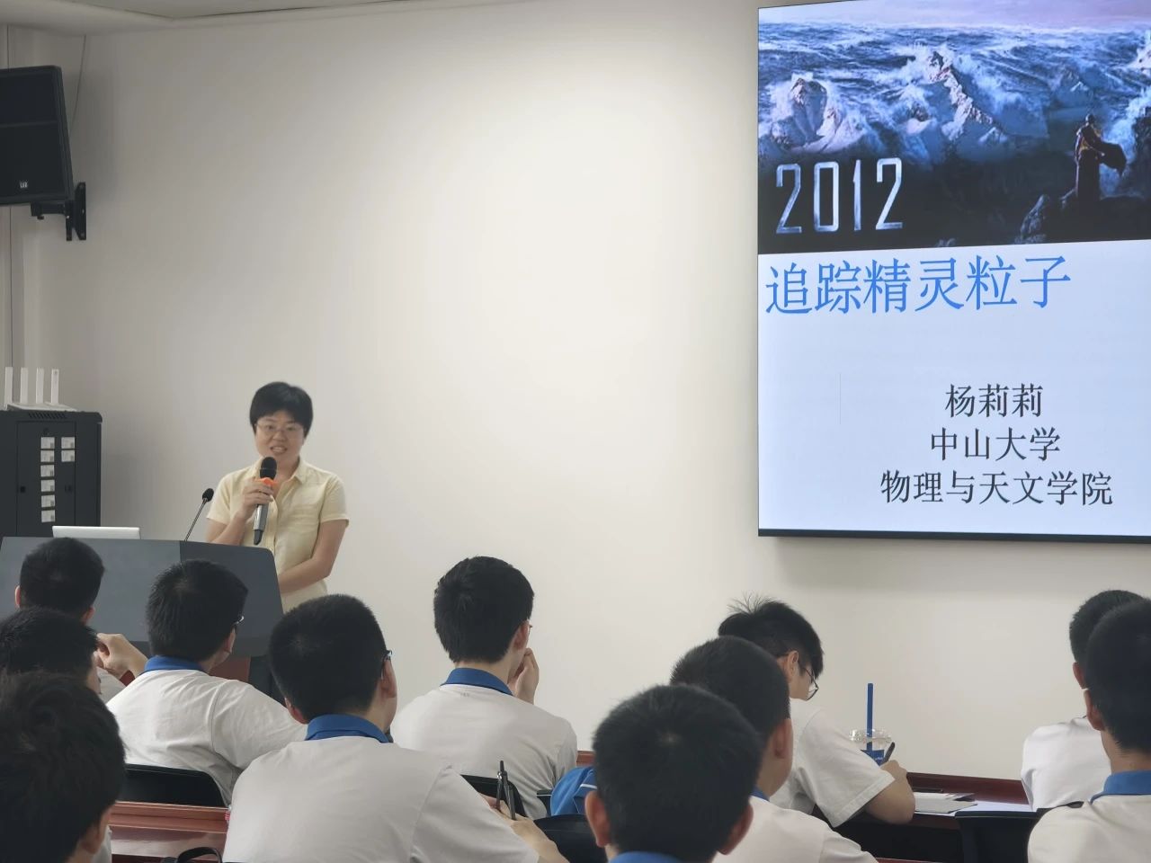 下午,杨莉莉副教授为广大附中的师生带来学术讲座《追寻精灵粒子》。她从“世界有多大”“银河系有多大”引入,强调中微子对于我们观测世界的重要性,并进一步论述中微子的性质、中微子的发现历史、中微子带来的困惑和惊喜以及中微子的未来应用,为广大附中师生带来一场精彩绝伦的学术盛宴。在讲座结束之时,她激励中学生们走近物理,享受物理,热爱物理。杨莉莉副教授的讲解深入浅出,其循循善诱的讲解风格赢得了师生们的喜爱,激发了广大附中学子对于物理学和天文学知识的兴趣。