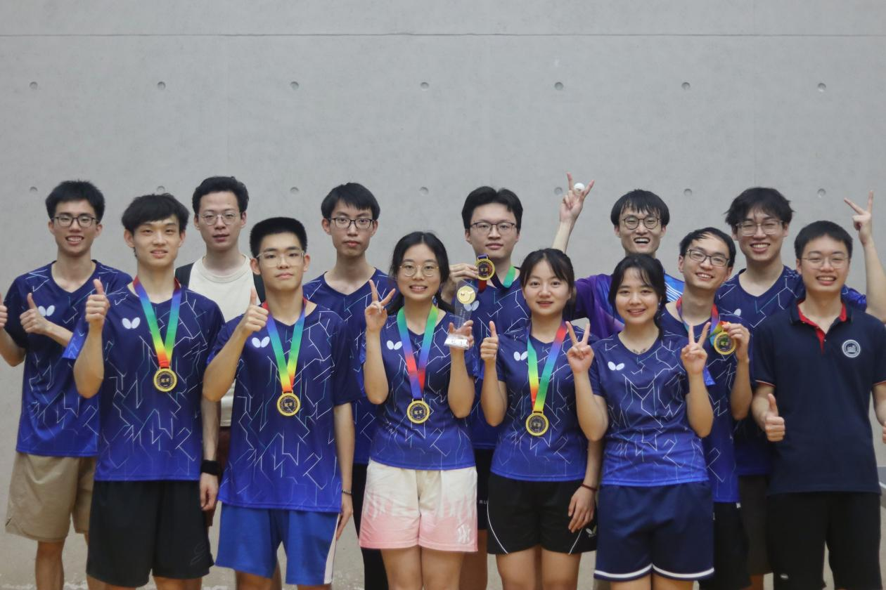 决赛异常焦灼,院队队员持续发力,愈战愈勇,用精湛的技术和巧妙的战术配合,在比赛中频频打出了漂亮的扣杀与攻防转换。2023级本科生冯昕宇尽管是院队最年轻的队员,但在关键比赛,特别是争夺冠军点的关键分处理上,毫不畏惧,反应迅速,脚步灵活,展现了出色的技战术水平,积极主动,电光火石之间撕开一道口子,为院队锁定胜局。最终,物天院队以3:2的大比分卫冕珠海校区冠军,捍卫荣誉。