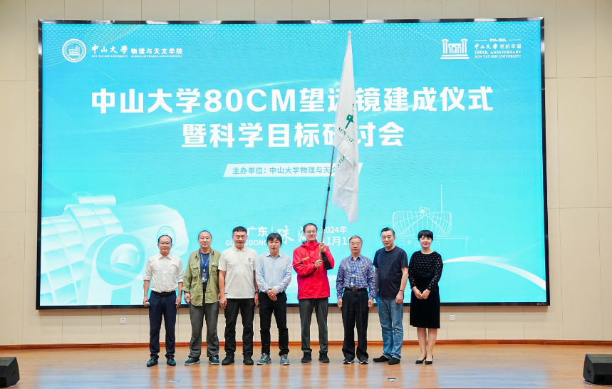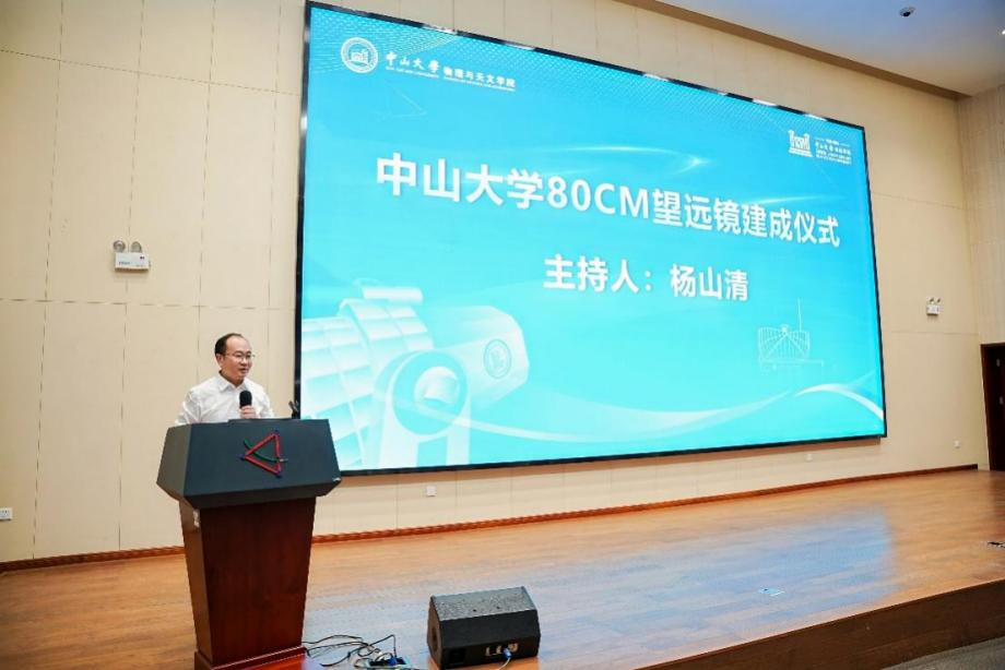 2024年11月15日,中山大学80厘米望远镜建成仪式暨科学目标研讨会在中山大学珠海校区隆重举行。中国科学院院士、紫金山天文台史生才研究员,国家自然科学基金委天文科学处何成处长,广西大学副校长梁恩维教授,中国科学院云南天文台台长陈雪飞研究员,冷湖科创园管委会赵毅副主任以及中山大学科学研究院院长程晓教授、必一·运动(B-Sports)-「登陆注册开户官网」院长杨山清教授和党委书记海珊出席仪式为中山大学80厘米红外天文望远镜揭幕。来自国内多所高校和科研院所以及80厘米望远镜所在地青海省冷湖镇的40余位专家学者和相关人员共同见证这一历史性的时刻。仪式由中山大学必一·运动(B-Sports)-「登陆注册开户官网」院长杨山清教授主持。